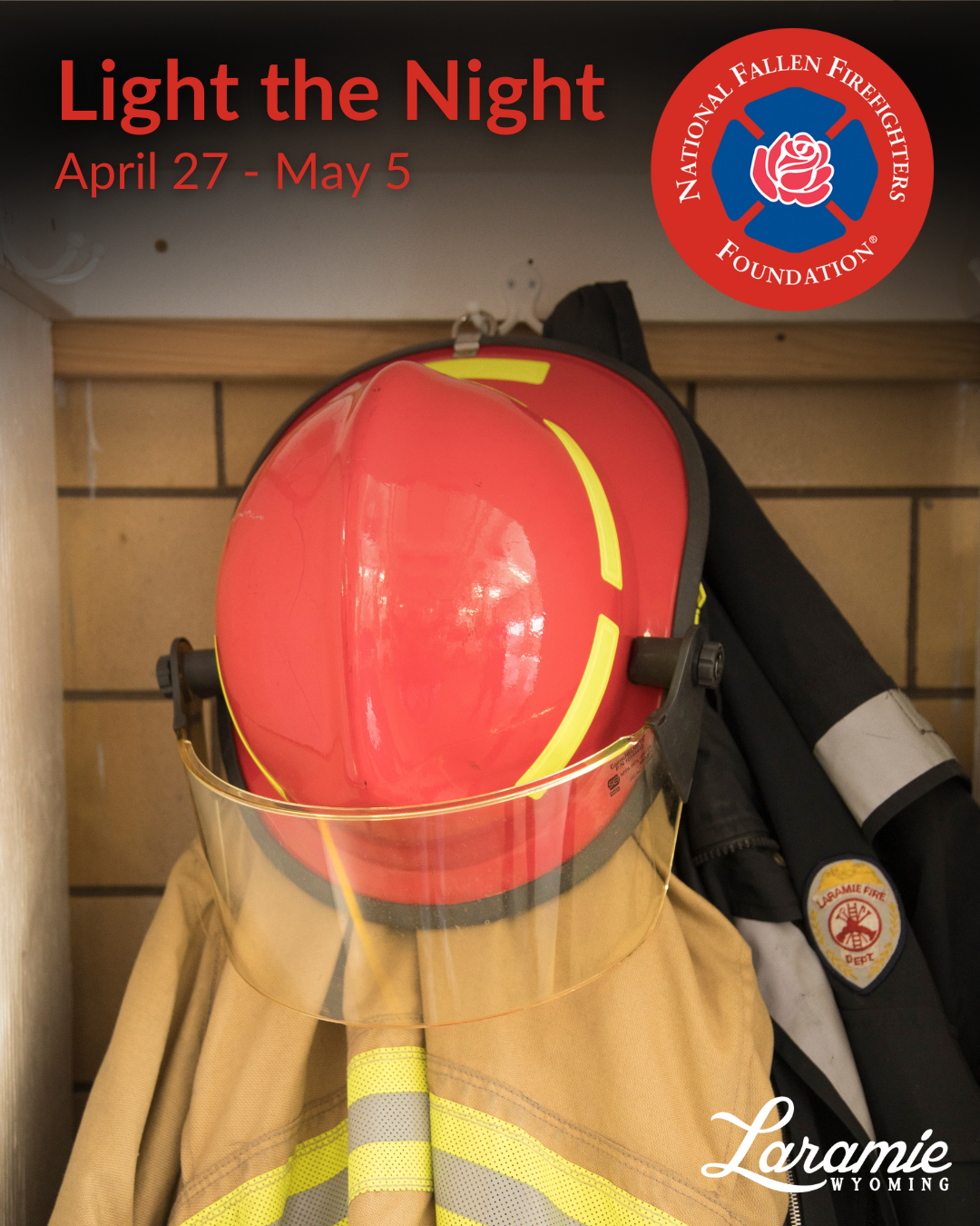 The Laramie Fire Department (LFD) is joining the National Fallen Firefighters Foundation for Light the Night on May 4th to honor and remember the sacrifice of America’s fallen fire heroes. Light the Night occurs in coordination with National Fallen Firefighters Memorial Weekend, during which landmarks, fire departments, community organizations, businesses, and homes across the nation light up red from April 27th through May 4th.