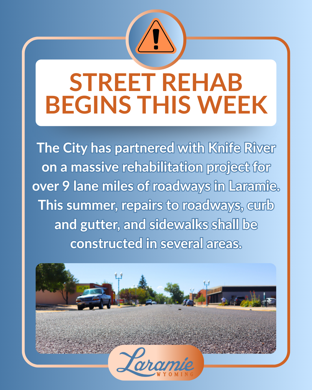 The City of Laramie partnered with Knife River to begin a massive rehabilitation project for 9 lane-miles of mill and overlay with associated curb and gutter, ADA ramps, and spot base repair this summer. The following is the initial project schedule. Dates are approximate and may change due to weather, field conditions, and construction progress.